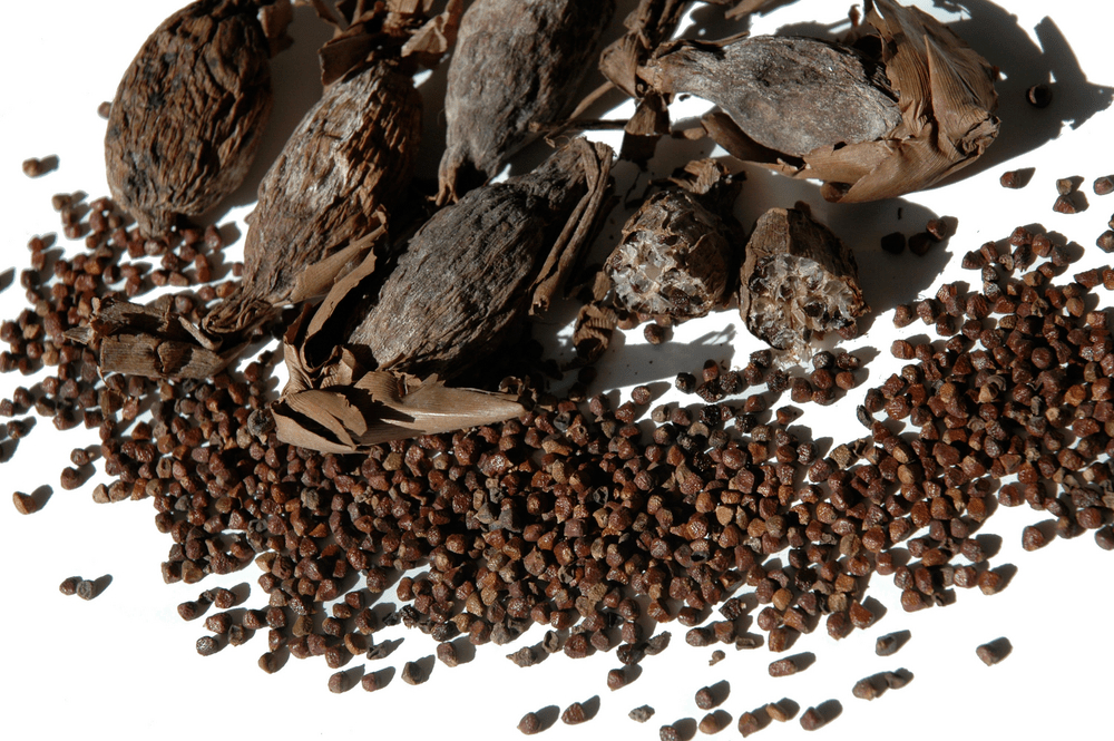 Take the alligator pepper and grind into powder, pour a little bit of it in the glass cup.